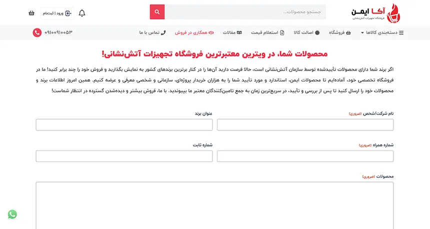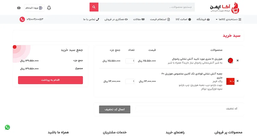 طراحی وب‌سایت فروشگاه اینترنتی آکا ایمن، فعال در زمینه فروش تخصصی تجهیزات آتش‌نشانی، به سفارش جناب مهندس عباسی و به‌طور کامل توسط من اجرا شد.