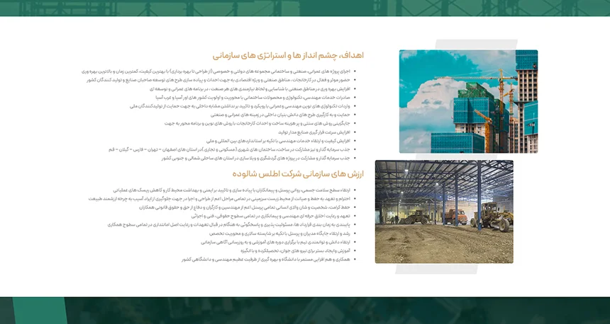 - طراحی سایت شرکت اطلس شالوده که در زمینه اجرای پروژههای صنعتی، ساختمانی و عمرانی در اصفهان فعالیت دارد، یکی از پروژههاییست که بهصورت اختصاصی توسط من اجرا شده است.