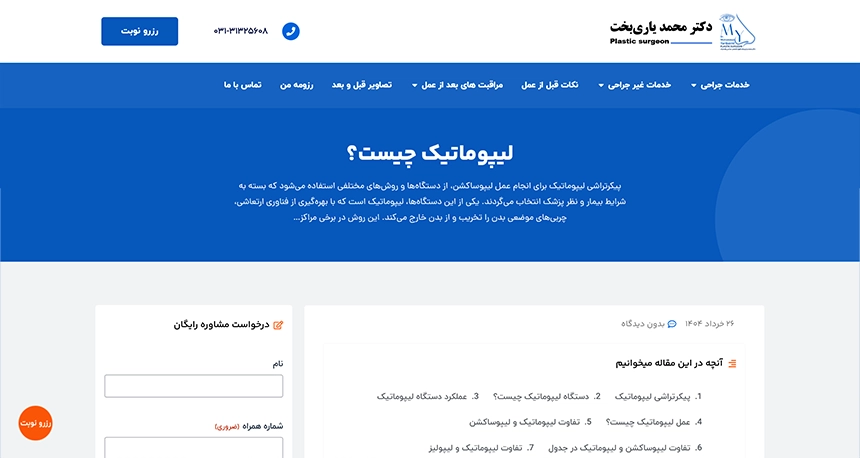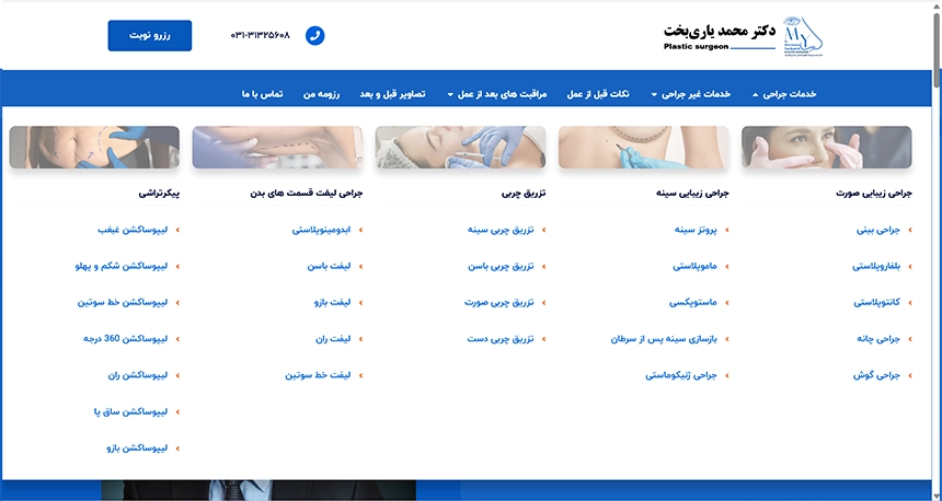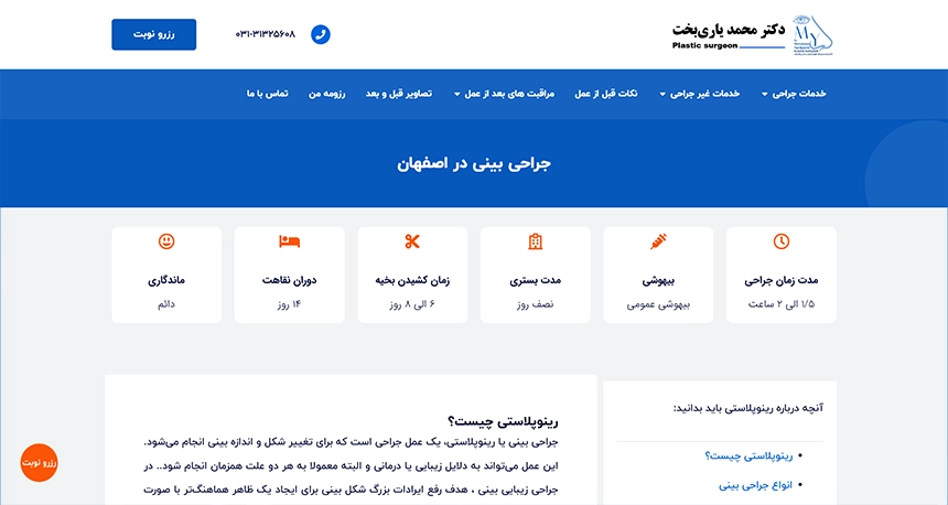 - وبسایت دکتر محمد یاریبخت، جراح پلاستیک شناختهشده در اصفهان، با وردپرس و بهصورت اختصاصی توسط تیم WebStyler پیادهسازی شد؛ از صفر تا صد پروژه، یعنی طراحی رابط کاربری، توسعه فنی، تولید محتوای متنی و تصویری، دستهبندی خدمات، و سئوی ساختاری.